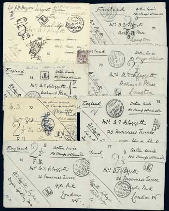 136 : width="300p" alt="image" ></a></cfif>SUDAN Campaign Mail The Dongola Expedition, 1895-96 1896 (7 Aug.) envelope ex the "Sloggett" correspondence to Tunbridge Wells, marked "Active Service, No stamps obtainable", showing "wadi-halfa camp" c.d.s.,