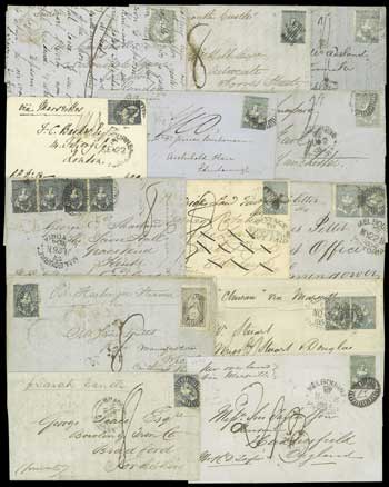 137 : manuscript "8" rate marking and green arrival c.d.s. with, on reverse, light oval "ship letter/melbourne" d.s. in red, fine. S.G. 14. Photo Estimate £ 150-180<A HREF="https://d3ums4016ncdkp.cloudfront.net/auction/main/5025/5025_93_1.jpg"