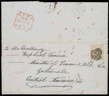 137 : (straight-edge at left) and showing handstruck "4" (reals) in green with, on reverse, red despatch d.s. and clear small Belize double-arc d.s. (11.11). Photo Estimate £ 200-250<A