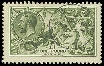 136 : SRC="https://d3ums4016ncdkp.cloudfront.net/auction/main/5011/5011_1289_1.jpg" width="300p" alt="image" ></a></cfif>£1 green. good to fine used with a neat but faint strike of 1913 Guernsey c.d.s., a few indistinct marks on reverse, otherwise