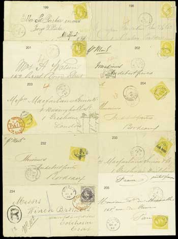 136 : width="300p" alt="image" ></a></cfif>x ST. LUCIA 1881-84 Surcharges Covers 1884 (11 July) entire to Bordeaux, bearing CA perf 12 4d. yellow tied by "A11" obliterator, showing despatch c.d.s. overstruck by transit d.s. and, on reverse, London and