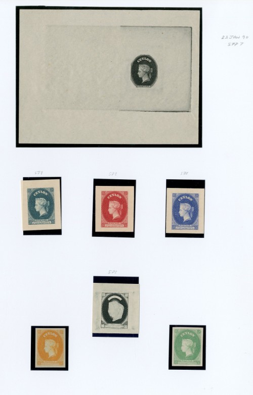 137 : blank value tablet (Type DD; 4) in blue-green, carmine, grey-black and in black, and Queen´s Head and surround only (Type DE; 3) in carmine, blue and in black; and 1929 with scroll work in value tablet (Type DH; 4) in deep carmine (2, one on large