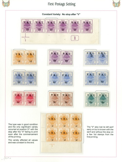 137 : block of four, 1d. contained in current number corner strip of six and 1/2d., 2d., 2 1/2d., 3d., 4d., 6d. (both), 1/- and 5/- in pairs with normal; generally good to fine mint. Cat. £980+ Estimate £ 250-300<A