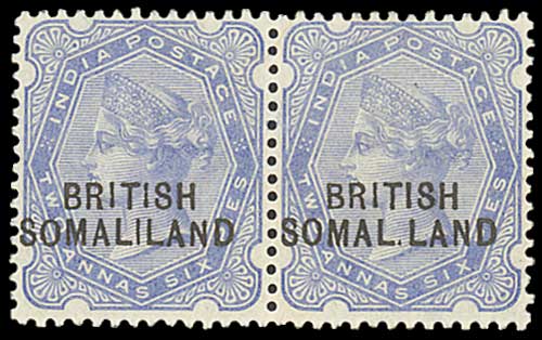 137 : right-hand stamp with variety "somal.land", fresh mint. Scarce. B.P.A. Certificate (2007). S.G. 18,18c, £250. Photo Estimate £ 100-120<A HREF="https://d3ums4016ncdkp.cloudfront.net/auction/main/1028/1028_1571_1.jpg" target="_blank">