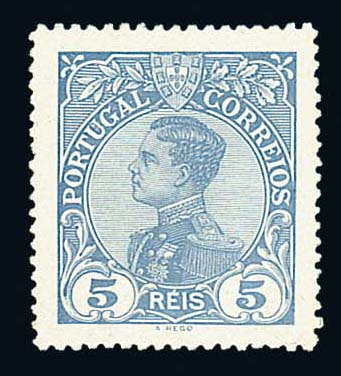 136 : SRC="https://d3ums4016ncdkp.cloudfront.net/auction/main/1034/1034_2420_1.jpg" width="300p" alt="image" ></a></cfif>Portugal King Manuel II 1909 - D. Alves Do Rego - Type VIII - Perforated Colour Trials on Surfaced Paper 5r. grey-blue, with gum,