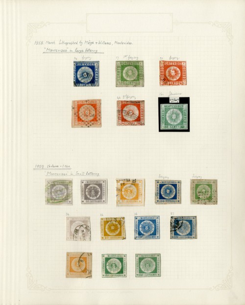 letters 180c. (2), 1860-61 thick figures with values to 120c. (4), 1864 6c. to 12c. unused, 1877 with values to 1p., 1897 with values to 3p., 1912-18 1p., 1919 Peace, 1924 Football, 1924 2p., 1925 Air Florida and Montevideo, 1926 imperf. Air set and