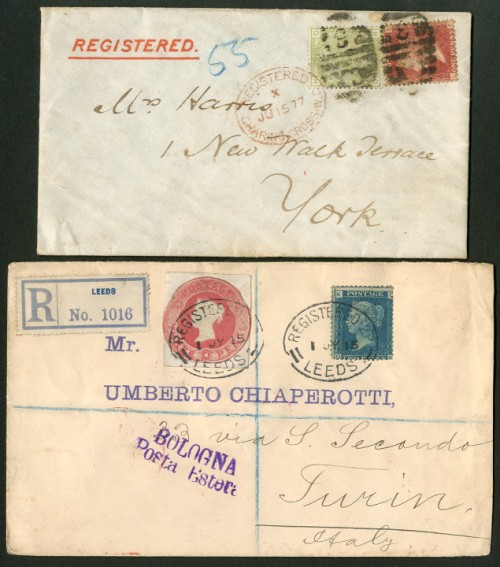 x Great Britain Collections and Ranges A selection of Q.V. registered mail including 1846 1d. pink envelope registered from