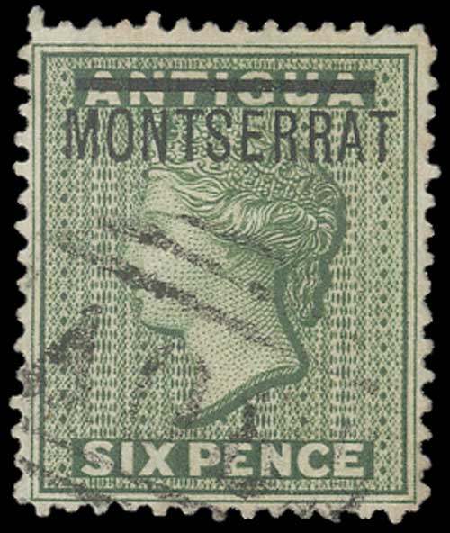 136 : SRC="https://d3ums4016ncdkp.cloudfront.net/auction/main/11025/11025_424_1.jpg" width="300p" alt="image" ></a></cfif>Montserrat — 6d. yellow-green, variety inverted "S", lightly cancelled towards foot leaving the variety clear, fine; scarce. B.P.A.