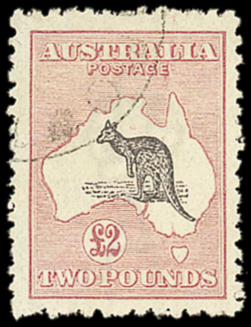 136 : SRC="https://d3ums4016ncdkp.cloudfront.net/auction/main/11025/11025_24_1.jpg" width="300p" alt="image" ></a></cfif>Australia Kangaroo Issues — £2 purple-black and pale rose, lightly cancelled and fairly well centred, fine. S.G. 45b,