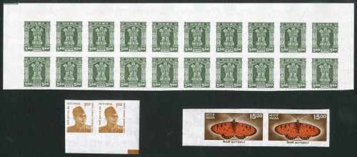 136 : SRC="https://d3ums4016ncdkp.cloudfront.net/auction/main/11029/11029_522_1.jpg" width="300p" alt="image" ></a></cfif>x India 2001 Bose 1r. lower right corner imperforate pair, ???? 15r. imperforate marginal pair, unmounted mint, and Official 1999 5r.