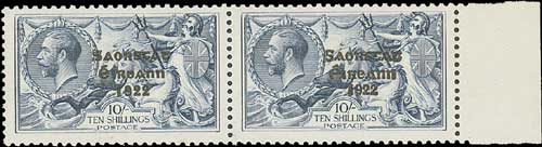 136 : SRC="https://d3ums4016ncdkp.cloudfront.net/auction/main/11038/11038_548_1.jpg" width="300p" alt="image" ></a></cfif>Ireland — 2/6d. to 10/- wide and narrow dates in se-tenant pairs (5/- is vertical), large part original gum. S.G. 83a-85a,