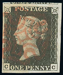136 : SRC="https://d3ums4016ncdkp.cloudfront.net/auction/main/12001/12001_630_1.jpg" width="300p" alt="image" ></a></cfif>Great Britain 1840 One Penny Black Plate VI CC, good to very large margins all round and showing a portion of the adjoining stamp