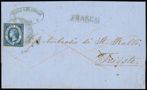 Ionian Islands 1859 (14 June) entire letter from Zante to Trieste, showing sender´s cachet and bearing 1859 (1d.) blue with good to