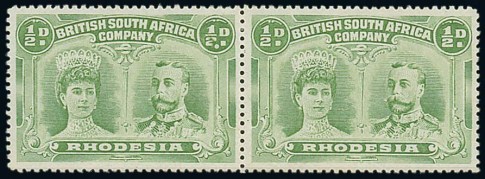 136 : SRC="https://d3ums4016ncdkp.cloudfront.net/auction/main/12038/12038_17_1.jpg" width="300p" alt="image" ></a></cfif>RHODESIA1910-13 Double Head IssueIssued Stamps - Perforated 14HalfpennyPlate II, RJL 4, Pale green group, Perforated 15A horizontal