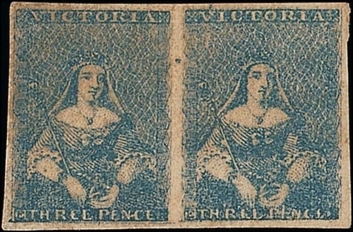 138 : stamps were rouletted in 1857 and 96,000 perforated in 1859.3d. blue pair, [19-20], unused with large part original gum, clear to large margins; very fine. pairs are the largest recorded multiple and this is the finest of the five recorded. RPSV
