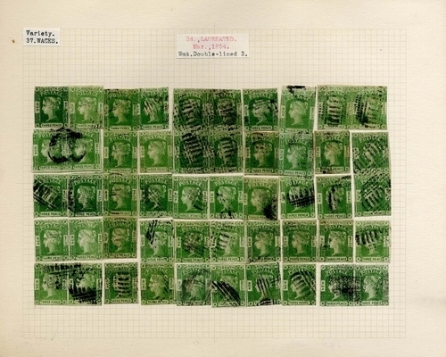 137 : block and vertical strip of four, pairs (8) and singles (27), one position overlapped, a few with four margins, condition rather mixed as to be expected with a lot of this nature. S.G. 87<A