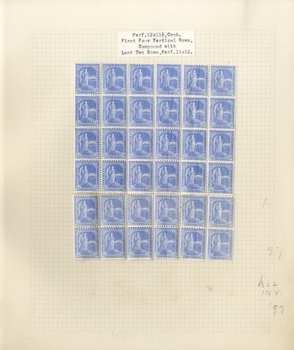 137 : twenty-four (6x4), two with fox spots on reverse, and a perf 11x12 mint block of twelve (6x2), the two blocks originally forming a block of thirty-six, a few split perfs otherwise fine. S.G. 265, 265b; £1332<A