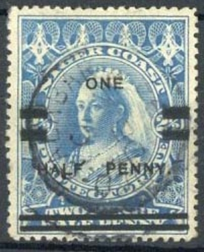 137 : at Old Calabar960 of these provisionals were made. The sheets were surcharged in rows of eight. Three rows (24 stamps) received the double surcharge, three having the "oie" [8] variety[2], perf 14½-15, cancelled by black c.d.s. (4.12.94), fine. S.G.
