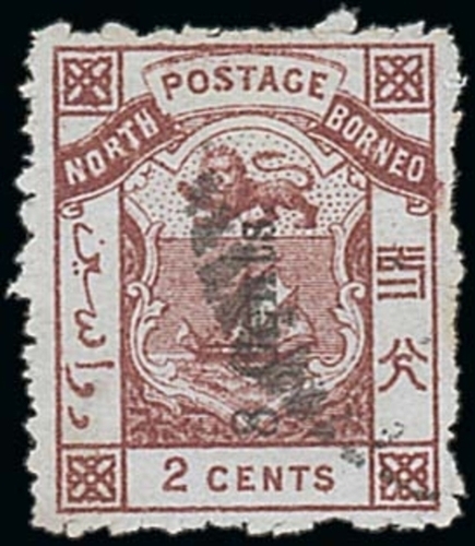 136 : SRC="https://d3ums4016ncdkp.cloudfront.net/auction/main/13031/13031_918_1.jpg" width="300p" alt="image" ></a></cfif>North Borneo1883 (June) Surcharges"8 Cents." on 2c. red-brown, small part oval of bars cancellation; fine. S.G. 2, £800. Photo<A