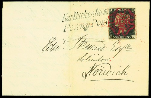 137 : with New Buckenham/Penny Post additionally tying the stamp, to entire letter, dated 5 June 1840, addressed to Norwich, on reverse red attleborough and black norwich datestamps; filing folds clear of the adhesive; fine and a most attractive entire.