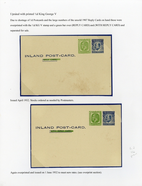 137 : 1d. used from Whakatane, ½d. on 1½d. handstamped "specimen" and with Postmaster-General blue pencil tick, 1923 ½d. used from Whakatane, 1924 ½d. Provisional with 1½d. obliterated (2, one handstamped "specimen"), 1924 new ½d. (2, one twice handstamped