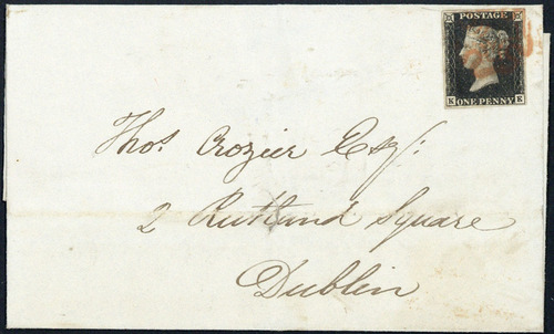 137 : 14 Sept. 1840, to Dublin, on reverse superb London despatch d.s.; horizontal filing fold clear of the adhesive and another stamp may be missing. Scarce Irish usage Subject to 20% VAT on Buyer’s Premium. For more information please view Terms and
