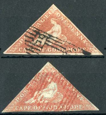 137 : margins and neatly cancelled, and 1d. brick-red cancelled in red, just clear to good margins all round; both lacking blueing though an attractive pair. R.P.S. Certificate (19560 for red postmark<A