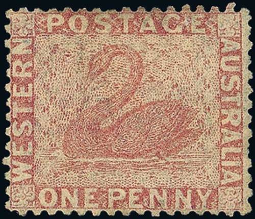 136 : SRC="https://d3ums4016ncdkp.cloudfront.net/auction/main/15024/15024_294_1.jpg" width="300p" alt="image" ></a></cfif>Western Australia1861 Printed by Perkins, Bacon & Co.Perf. 14 at Somerset House1d. rose, unused without gum, fine. S.G. 38, £375.
