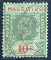136 : SRC="https://d3ums4016ncdkp.cloudfront.net/auction/main/15039/15039_215_1.jpg" width="300p" alt="image" ></a></cfif>(x) Mauritius1913 MCA 10r. green and red on green, fine used. S.G. 204, £225<A