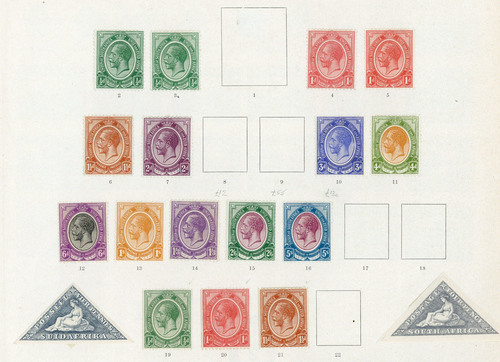 136 : SRC="https://d3ums4016ncdkp.cloudfront.net/auction/main/15039/15039_323_1.jpg" width="300p" alt="image" ></a></cfif>(x) South Africa1913-35 mint collection (83) including 1913-24 5/- purple and blue, 1927-30 5/- pair; also, South West Africa (7);