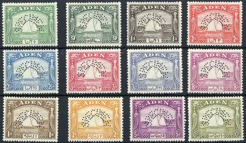 137 : width="300p" alt="image" ></a></cfif><b>Aden.</b> (x) The Ric Otton Collection of British CommonwealthAden1937 (Apr.) Dhow ½a. to 10r., each perforated "specimen", fine mint. S.G. 1s-12s, £750<A