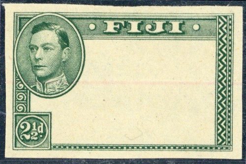 136 : SRC="https://d3ums4016ncdkp.cloudfront.net/auction/main/16025/16025_450_1.jpg" width="300p" alt="image" ></a></cfif>(x) Fiji1938-55 IssuePlate Proofs2½d. imperforate plate proof of the frame only, in green on thin unwatermarked paper, crossed by thin