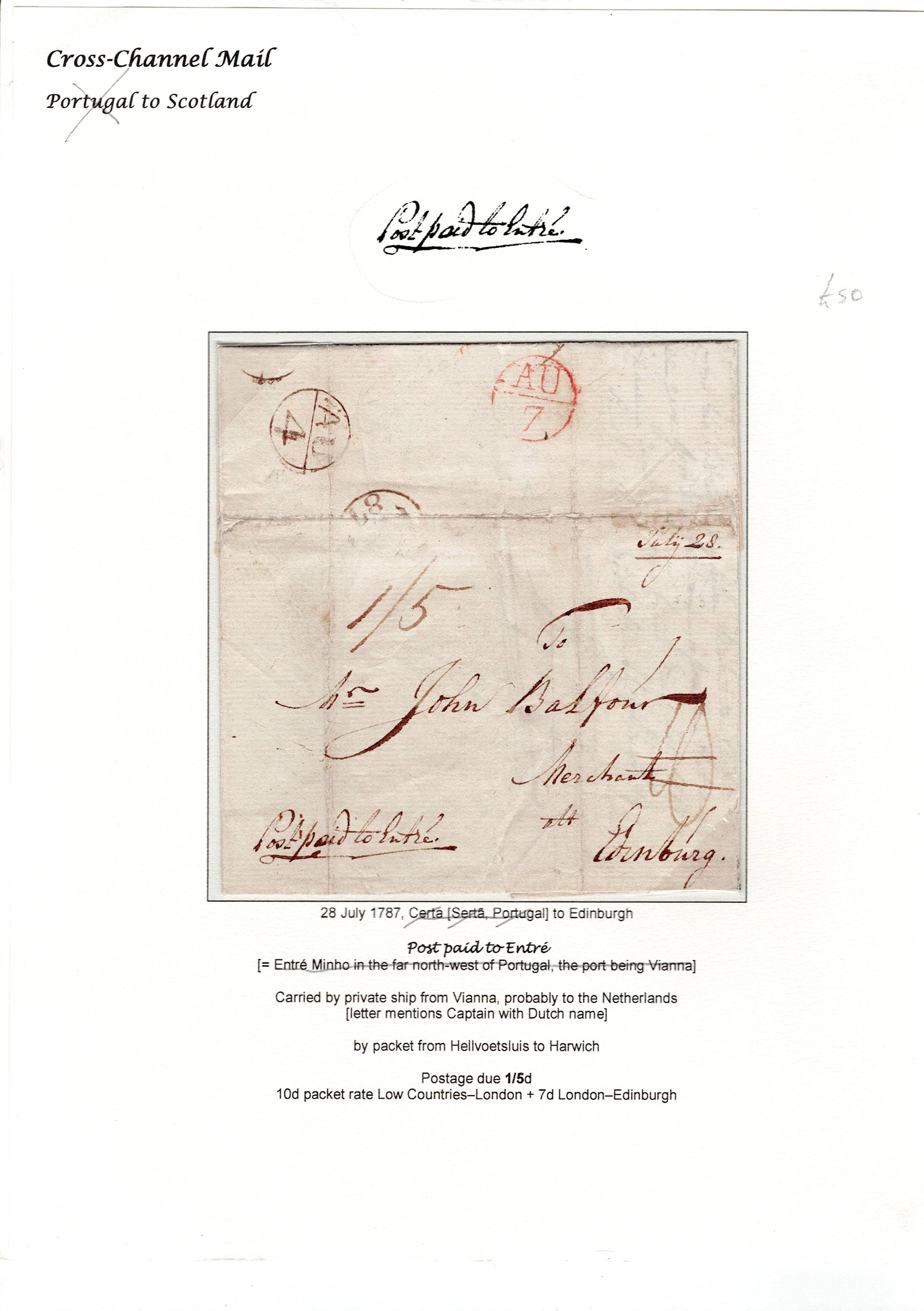 Postal history. Postmaster General. England. Letter written in Cezta (Certã?) on July 28, 1787, postage