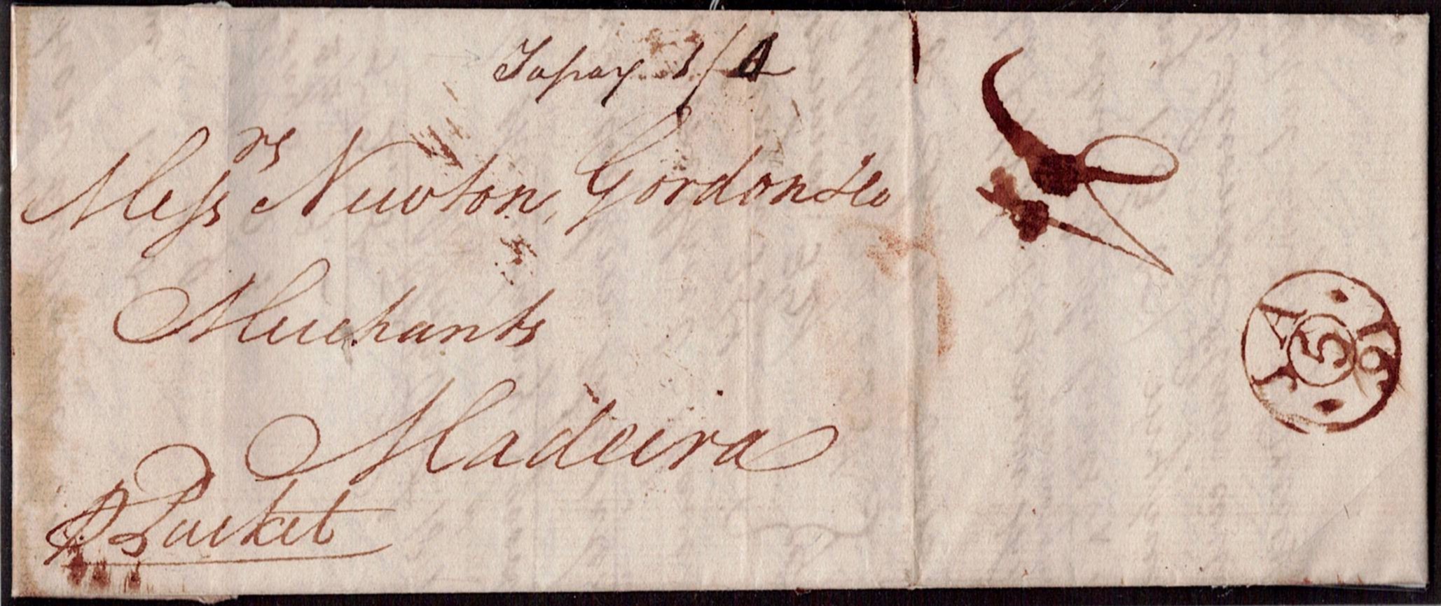 Postal history. Pre-philately. Letter "Hunt Newman Roope" from Madeira dated April 30, 1813, carried by