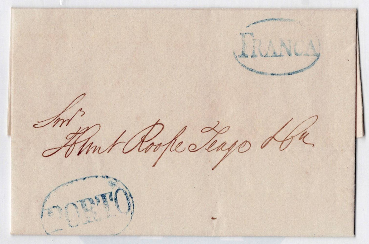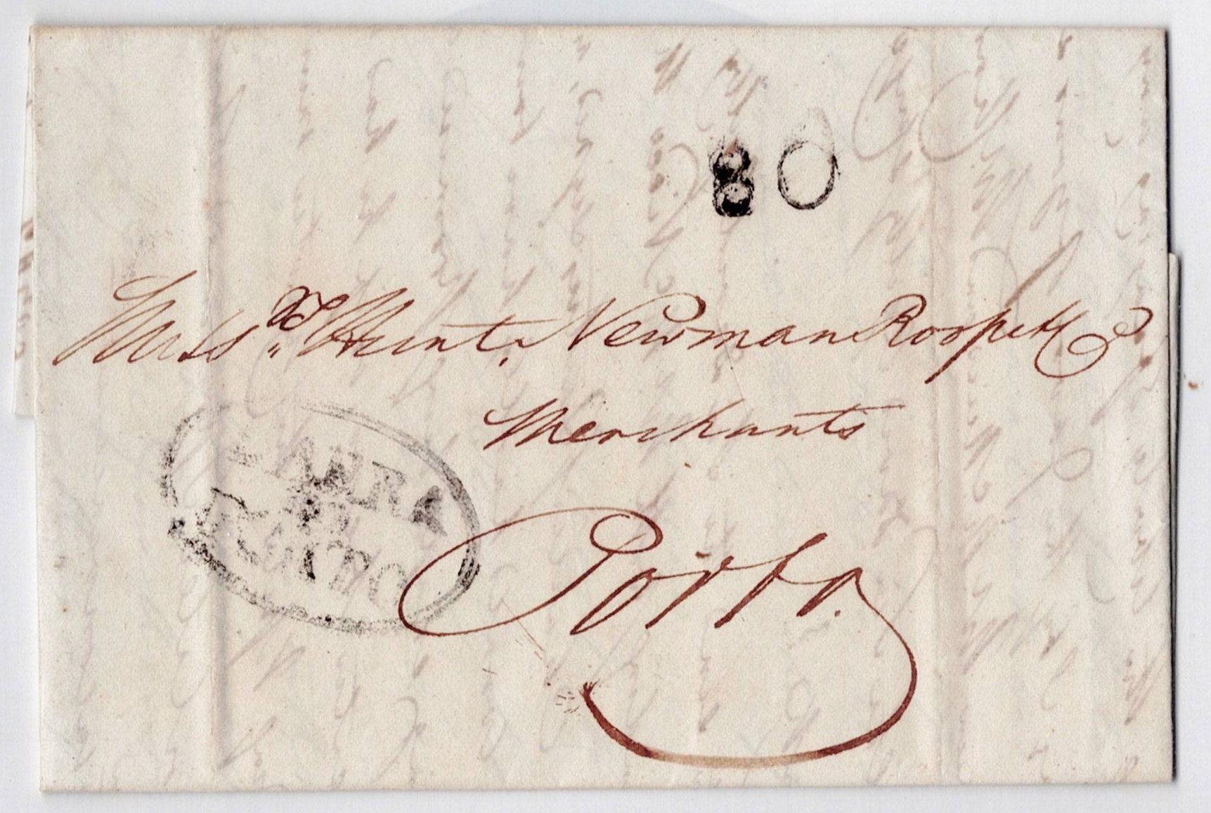 Postal history. Pre-philately. "Hunt Roope ..." circular letter from Porto dated January 1, 1839,