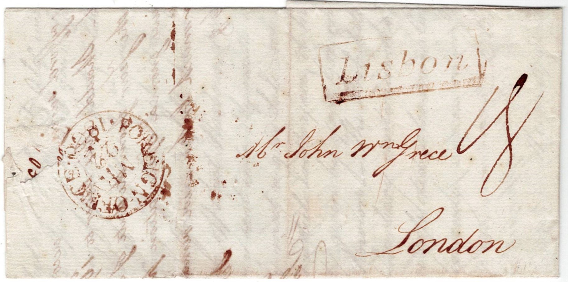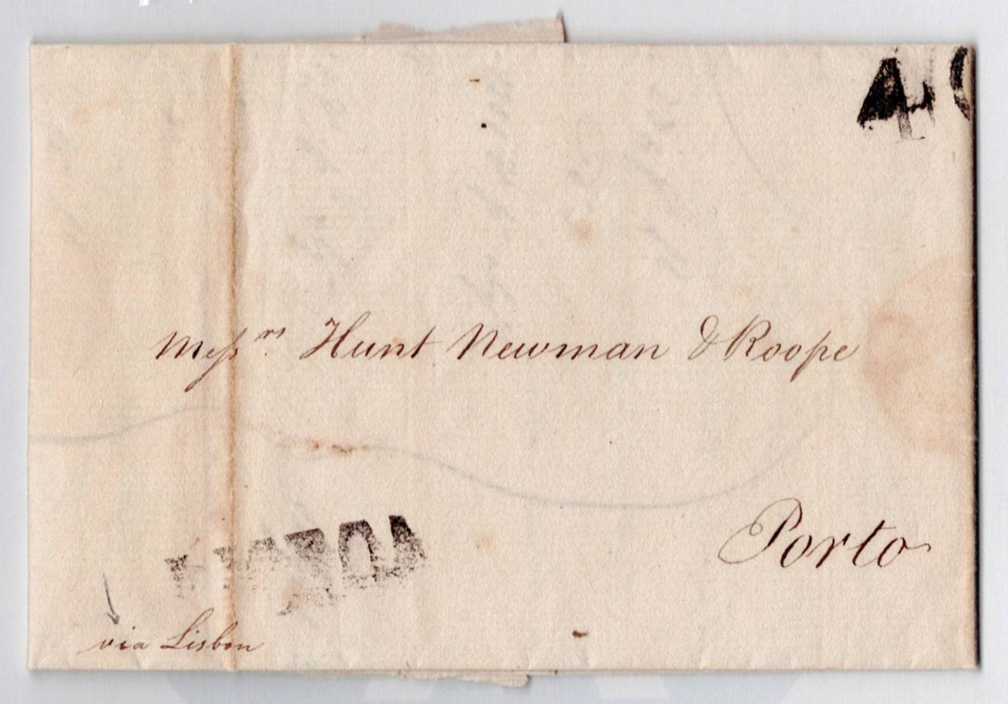 Postal history. Pre-philately. Siege of Porto (1831/3) letter "Hunt Newman Roope" from Lisbon 30