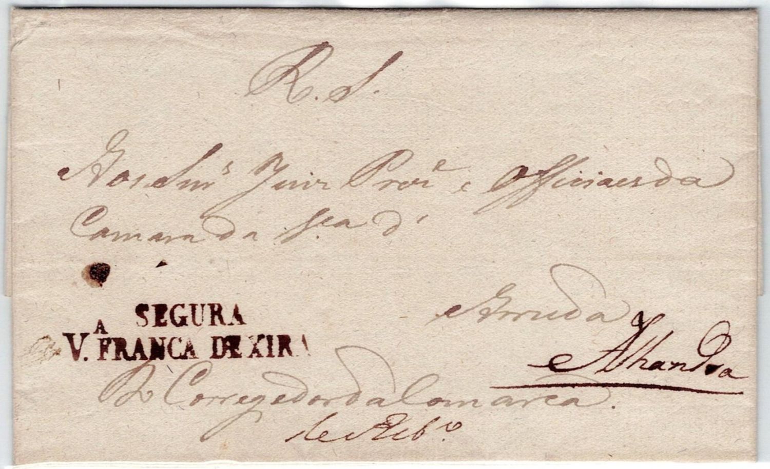 Pre-philately. Letter from the Royal Service, secured in Vila Franca de Xira on 20 May 1823, and