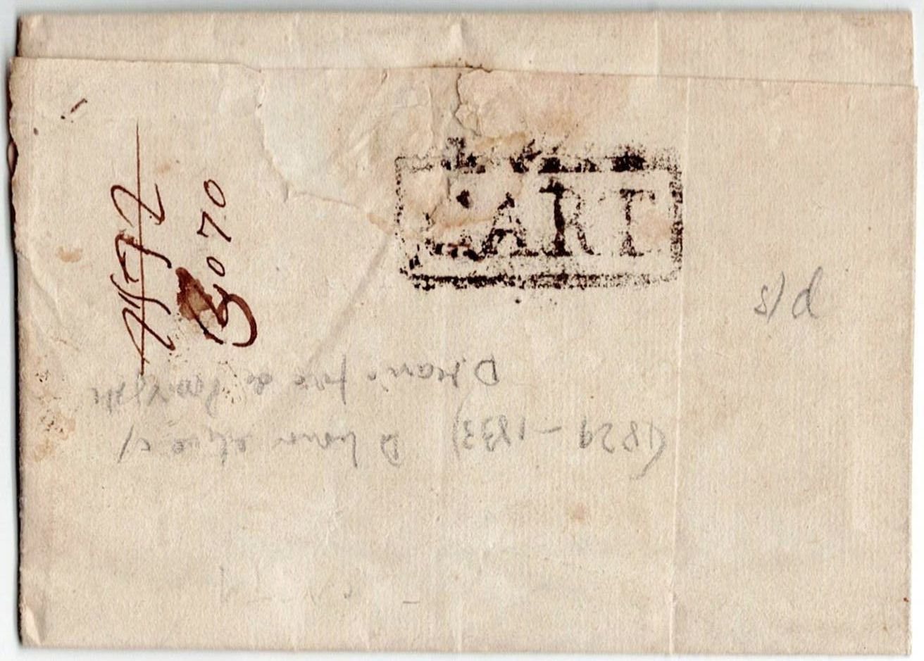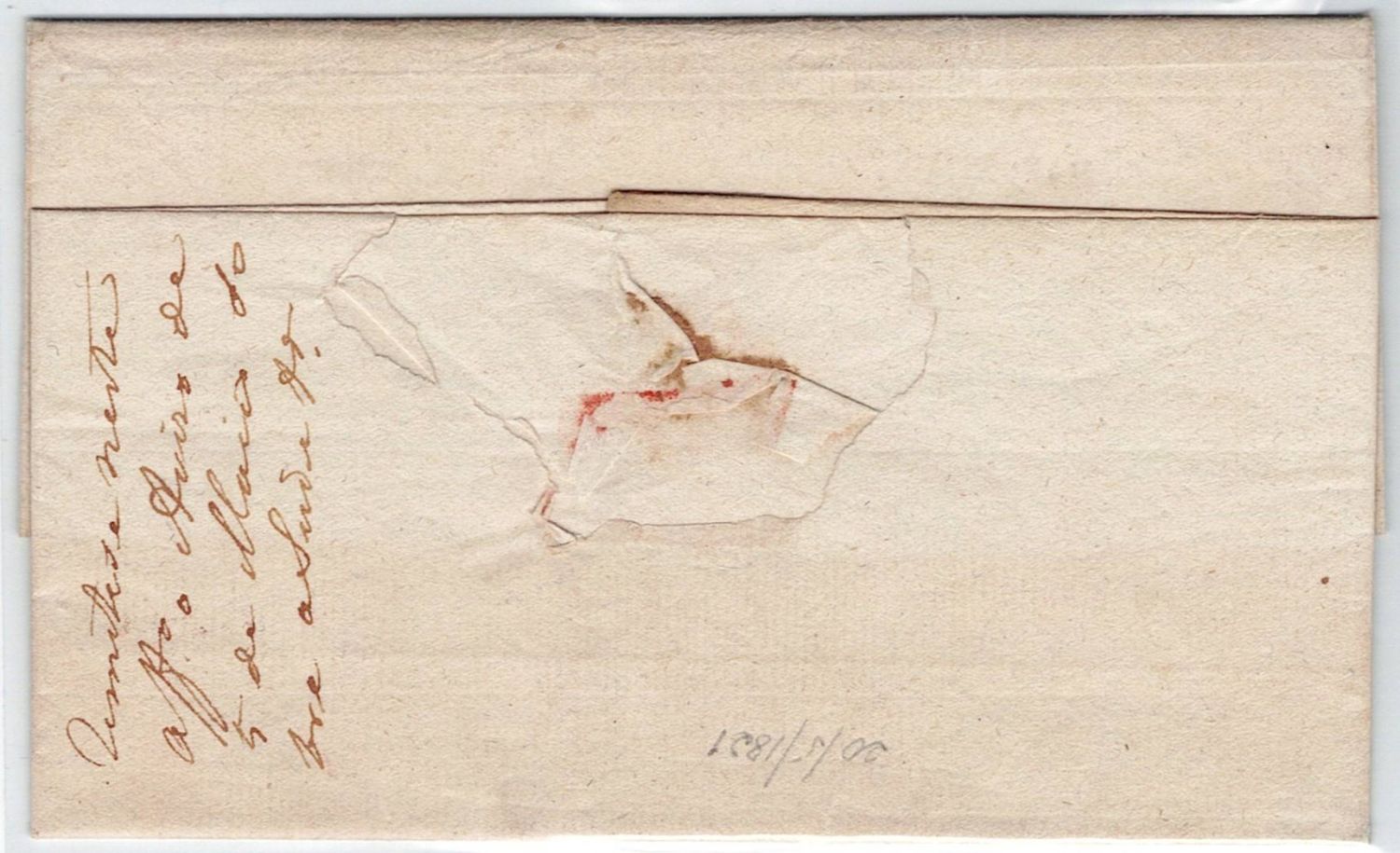 Pre-Philately. Secured letter cover, sent from Porto on 10 December 1822, marked PRT-S 3 (R.6),