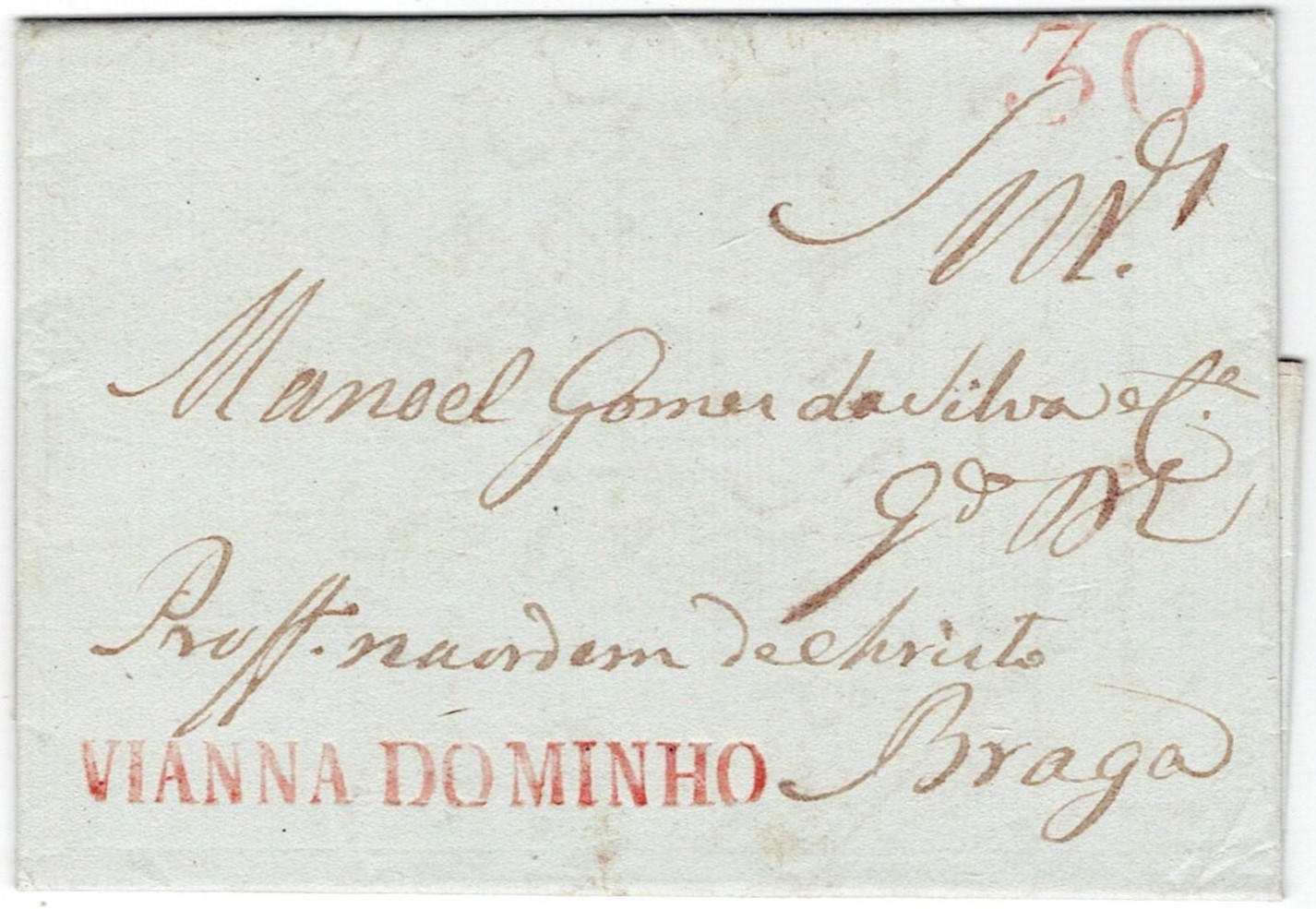 Pre-Philately Portugal, Viana do Minho. VCT 1 (R5) red, 13.2.1806, original size 30. MB.(Image 1)