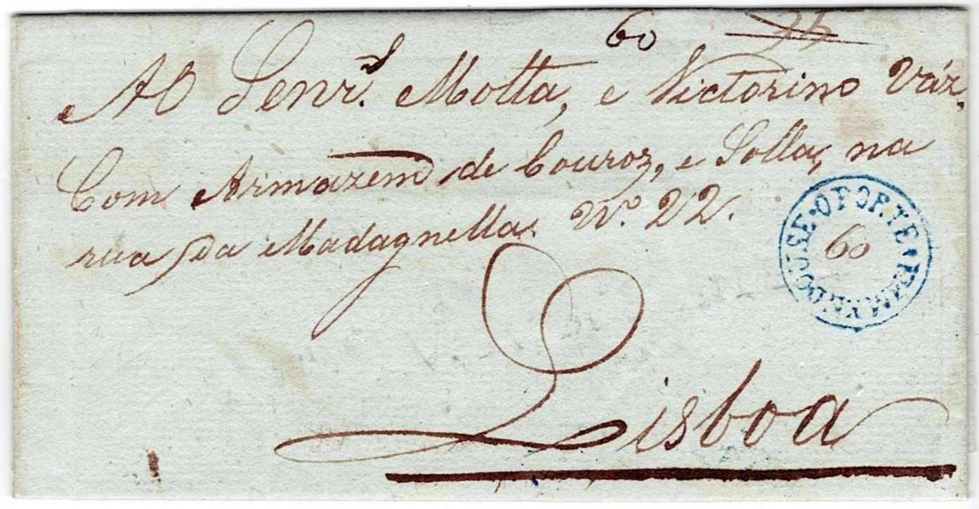 hand to Lisbon, where it was placed on the post office, Lisbon linear mark, postage 40 Reis to Porto(Image