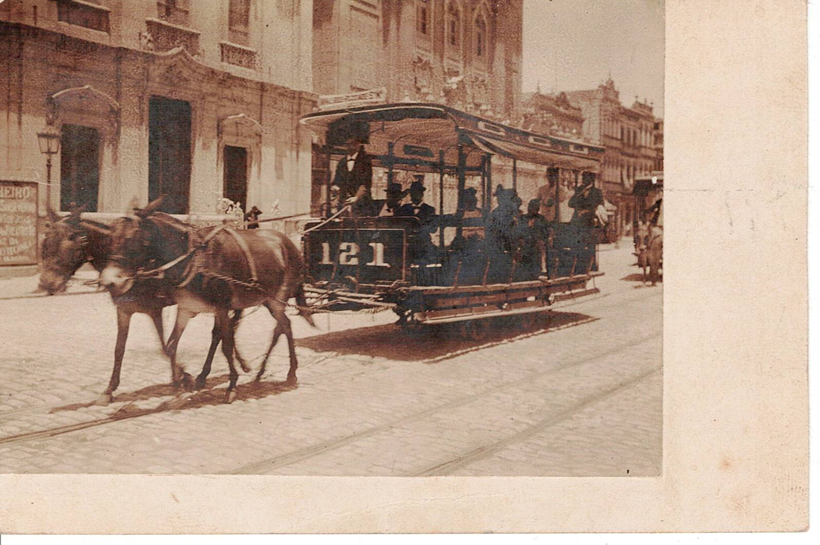 186 imageIllustrated postcards. Urban transport postcard route #121 pulled by donkeys. MR(Image 1)