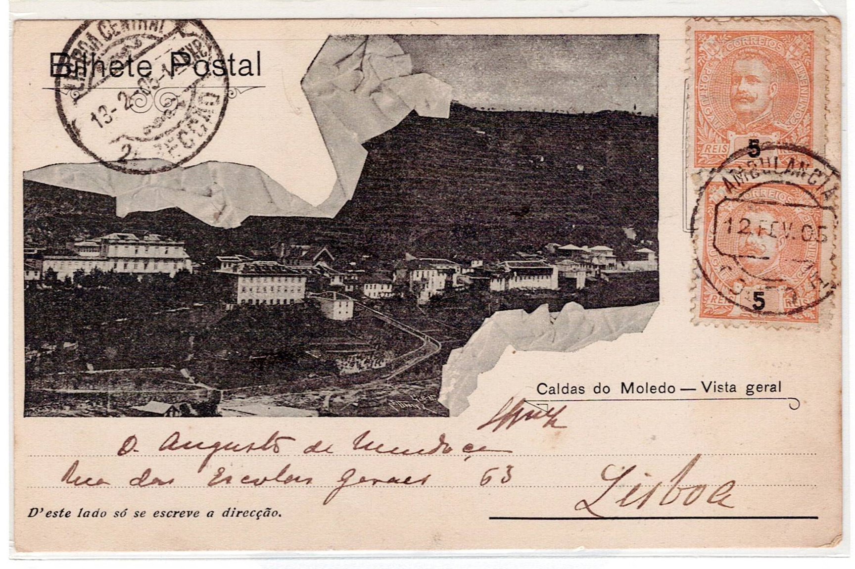 187 imagePostcards Portugal MOLEDO. Monochrome postcard of CALDAS DO MOLEDO. Circulated in 1905 with postmark AMBULANCE with 2 stamps 5 reis D. Carlos Mouchon, minor defects.(Image 1)