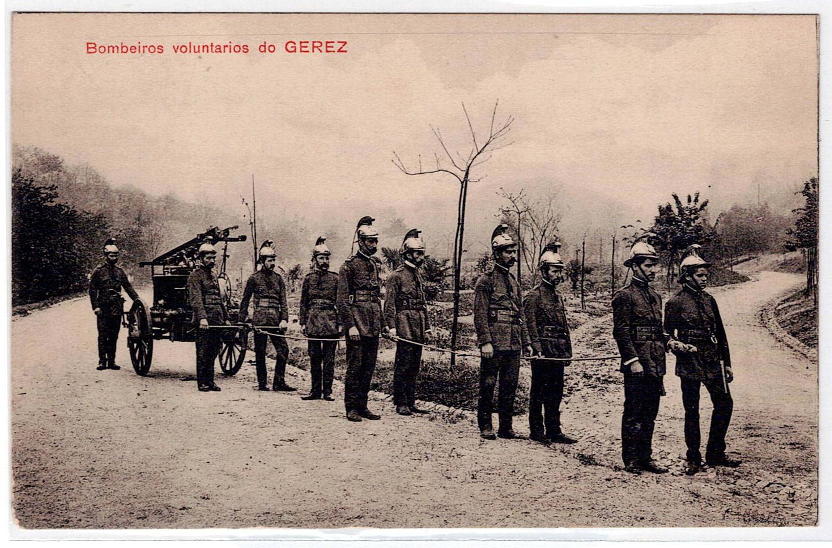 190 imagePostcards Portugal FIREMEN. Monochrome postcard with the theme "GEREZ Volunteer Firefighters." New, with minor defects.(Image 1)
