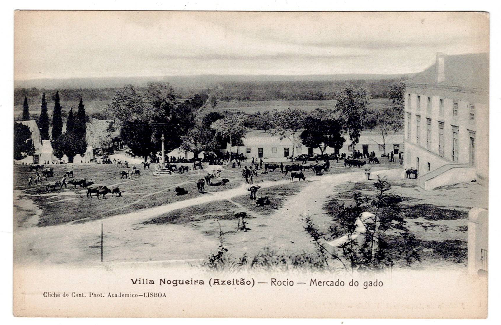 192 imageIllustrated Postcards Locations. Colored postcard of VILLA NOGUEIRA DE AZEITÃO with a view of the "Rocio - Mercado do Gado". New, well preserved.(Image 1)
