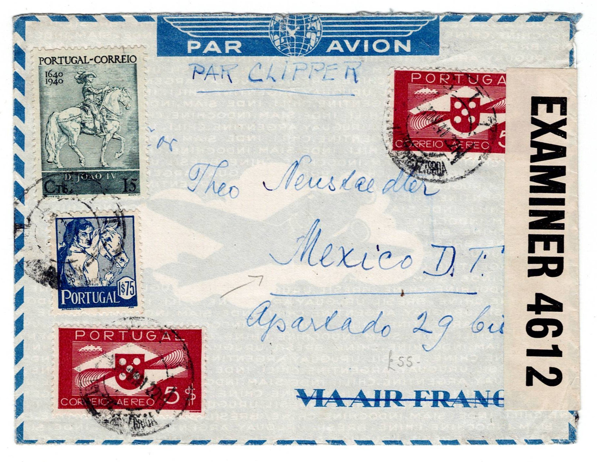 197 imageAirmail. Portugal Helice Issue. Letter from Lisbon, November 1941, by Clipper to Mexico, where it arrived on 11/27. Postage of 11$90 (2 stamps of 5$00 Helice, 1$75 and $15)(Image 1)