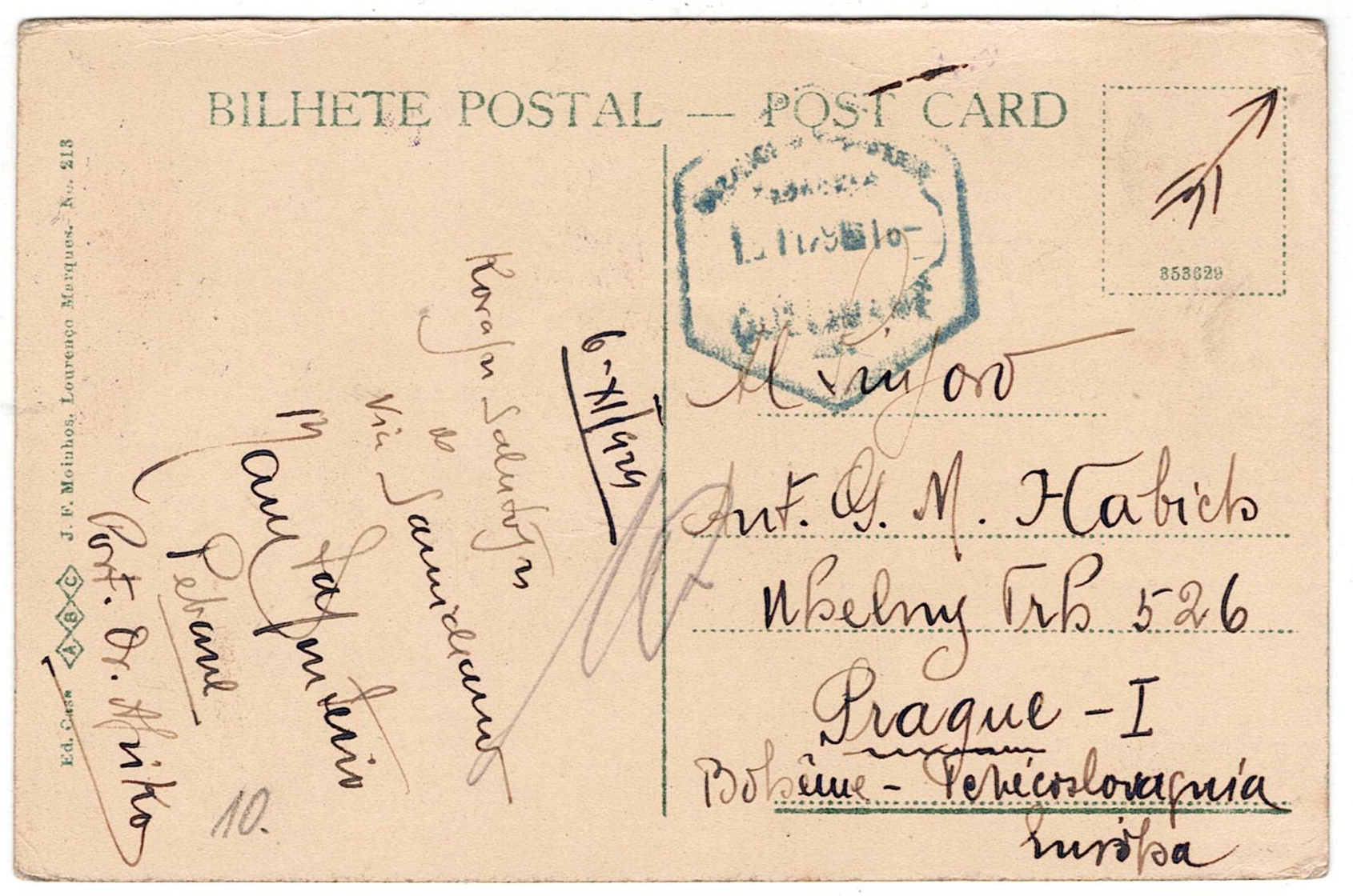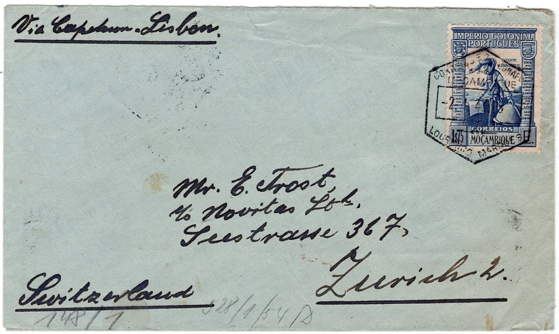 francs, by plane to Lourenço Marques, from where it was returned, as it was not claimed at the post office.(Image