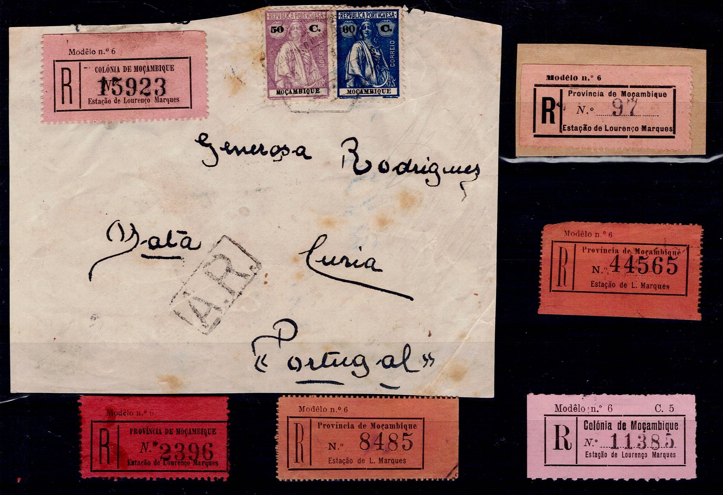 Lourenço Marques to the Curia, with 50 and 60 cent stamps. Ceres + 5 registration labels, model 6, all different.(Image 1)