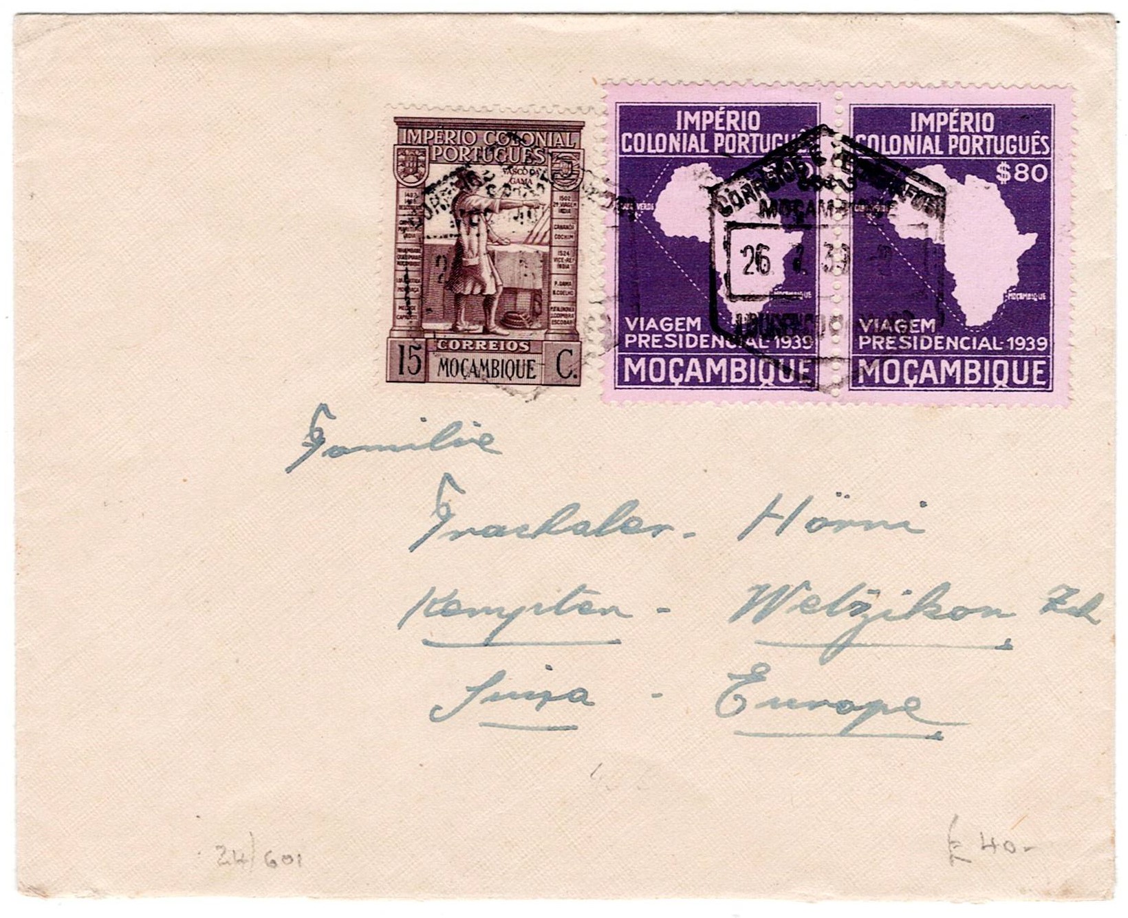 Mozambique. 1939. Letter sent from Lourenço Marques on 7/26/1939, postage of $1.75, with 2 stamps of