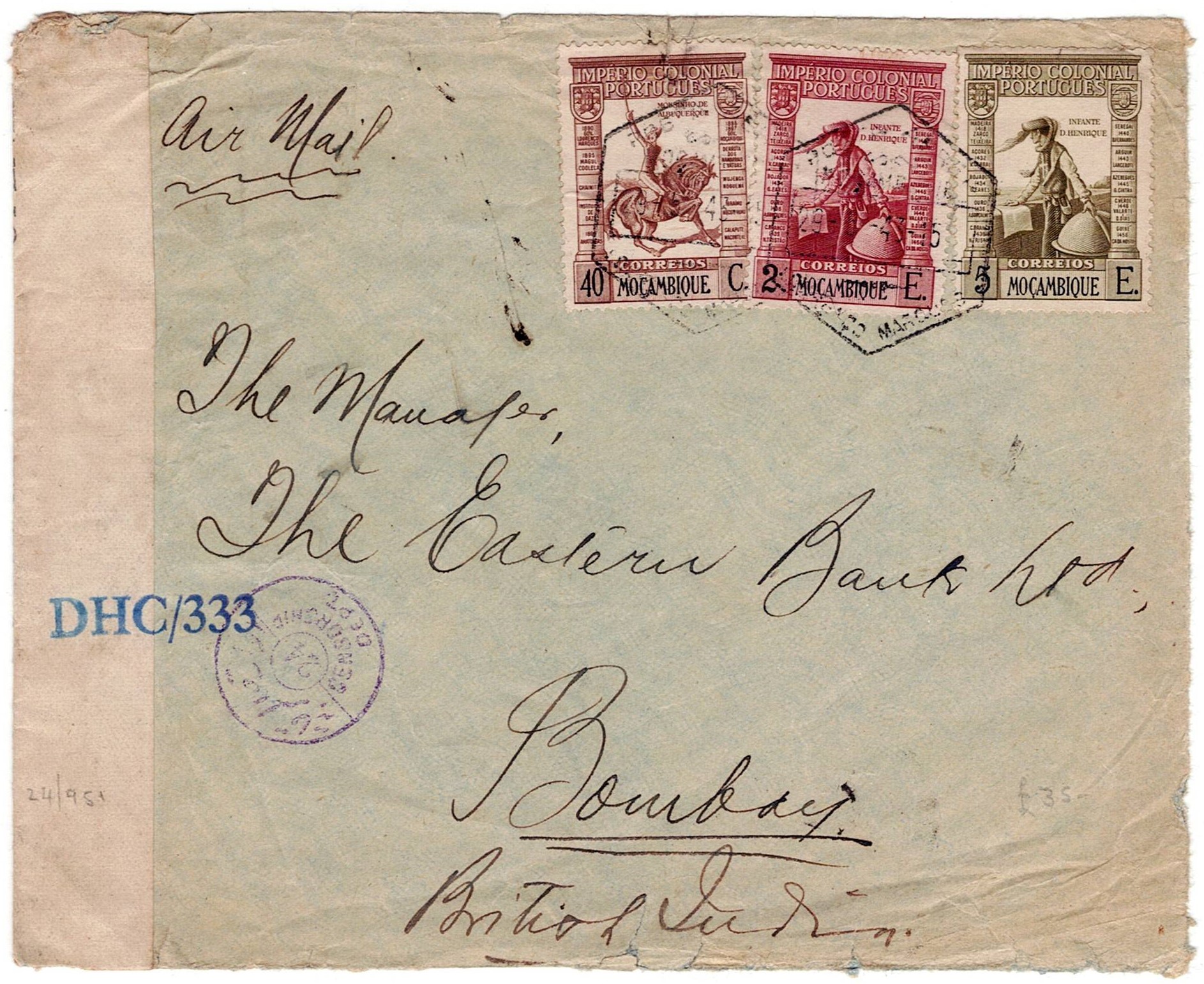 Mozambique. Postage. Letter sent from Moamba on November 26, 1944, franked with three $50 assistance