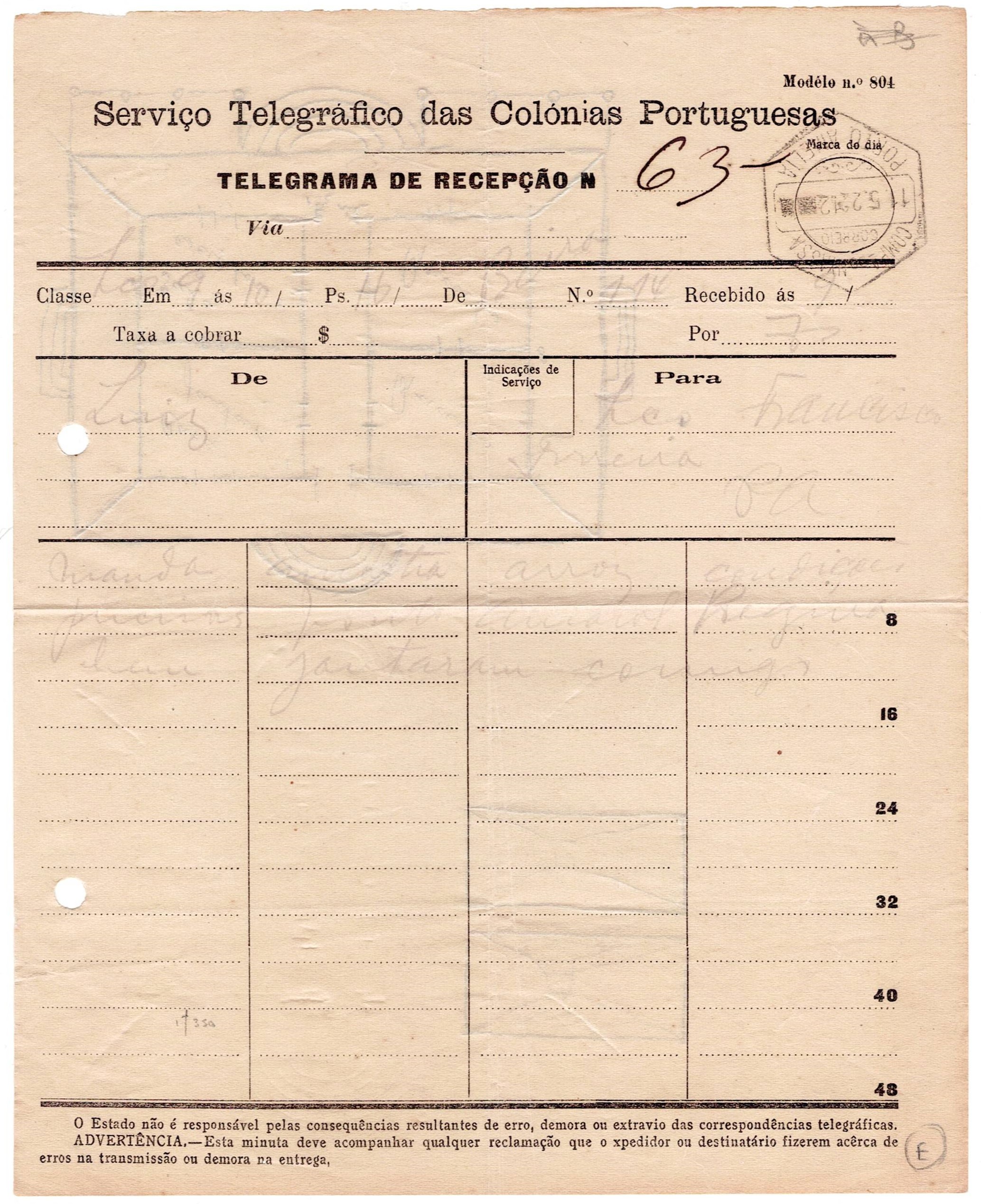 2073 imageNiassa. Printed telegram sent from Porto Amélia to Lourenço Marques on 11.5.22 €20(Image 1)